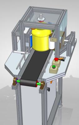 Egy fröccsöntött 10 literes műanyag flakon záróeleme fölötti feleslegét ipari penge segítségével távolítjuk el, a flakon körbefordulása közben. A Martor trapézpengét egy Norgren RA/191000-es típusú kompakt henger tolja rá a forgó flakonra, a keletkező selejtet egy másik munkahengerrel kiemeljük, majd a szállítószalagra ejtjük. A teljesen automata szalagról a flakon egy gyűjtő konténerbe továbbítódik a selejt pedig egy terelő által külön dobozba kerül.