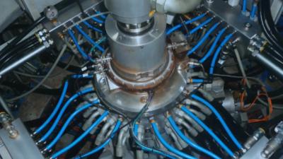 A technológia lényege, hogy az előmelegített előformát előnyújtás után 40 bar-s sűrített levegővel a szerszámba préseljük. Ezután a nagynyomású levegőt egy szelepen keresztül a környezetbe engedjük.